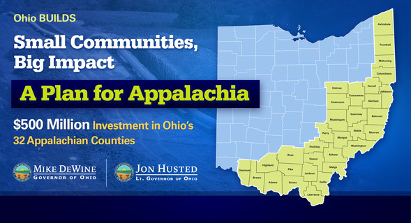 COLUMBUS, Ohio — Ohio Governor Mike DeWine and Lt. Governor Jon Husted today announced new details on the Appalachian Community Grant Program, which will infuse $500 million into Ohio’s 32-county Appalachian region to revitalize communities and stimulate transformational change.